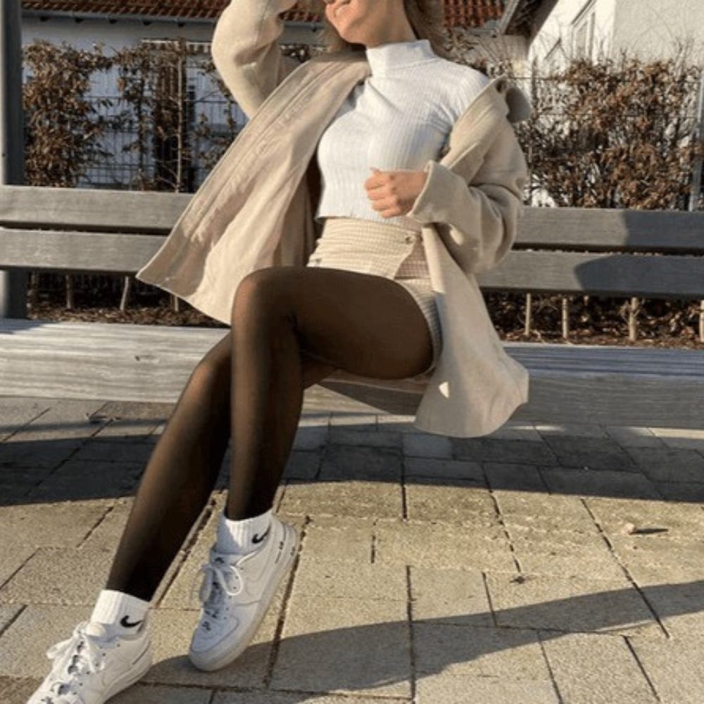 ✔️ Efecto translúcido: Las Medias de Felpa tienen un forro interior y, aunque sean calzas, tienen el efecto translúcido de unas medias de 7 denier;